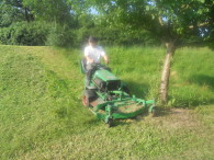 Zum Mähen von Gras wenden wir unseren selbstfahrenden Mulcher mit 120 cm Schnittbreite, einen Balkenmäher, der das Gras ohne weitere Zerkleinerung schonend mäht ( z.B. zur Heugewinnung ) und einen Freischneider, der vor allem bei schwierigen Bedingungen zum Einsatz kommt, an.